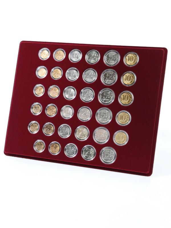 Для каждого номинала монеты предназначена своя ячейка. Монеты одного года располагаются в ряд (по горизонтали).