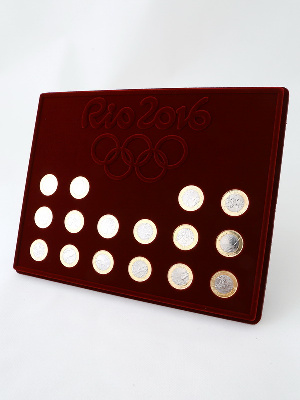 Планшет предназначен для хранения монет, посвященных XXXI Летним Олимпийским играм 2016 года в Рио-де-Жанейро