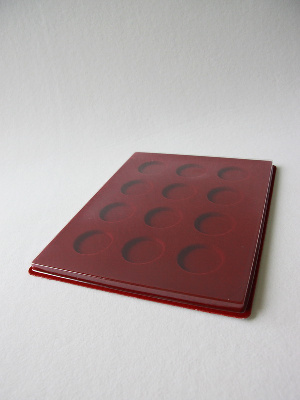 Планшет для хранения 12 монет в капсулах. Диаметр капсулы: 46 мм. 3 ячейки расположены по горизонтали и 4 ячейки по вертикали