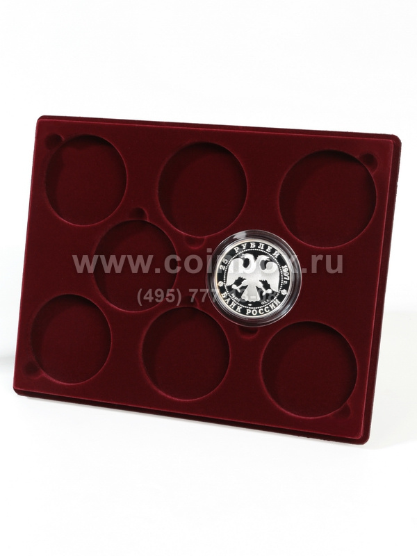 Планшет предназначен для хранения 8 монет в капсулах. Внешний диаметр капсулы 74 мм