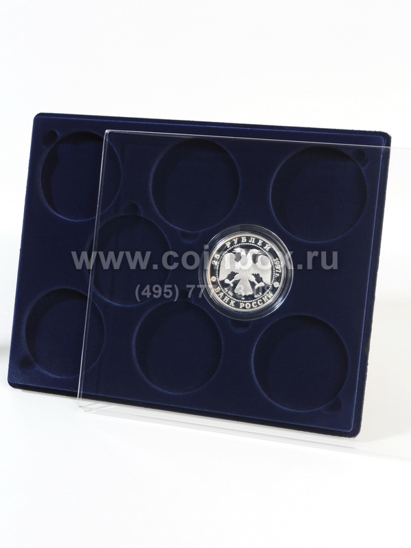 Планшет предназначен для хранения 8 монет в капсулах. Внешний диаметр капсулы 74 мм