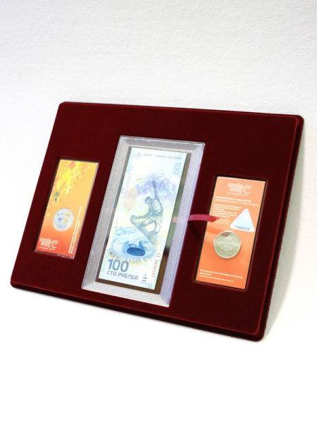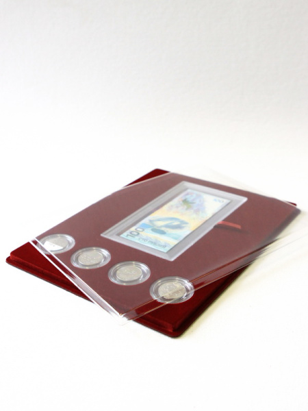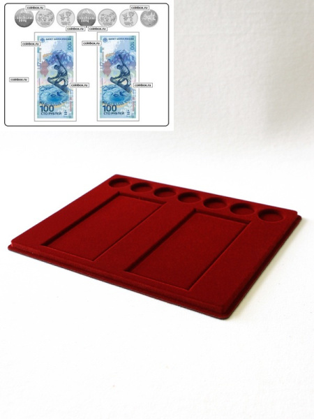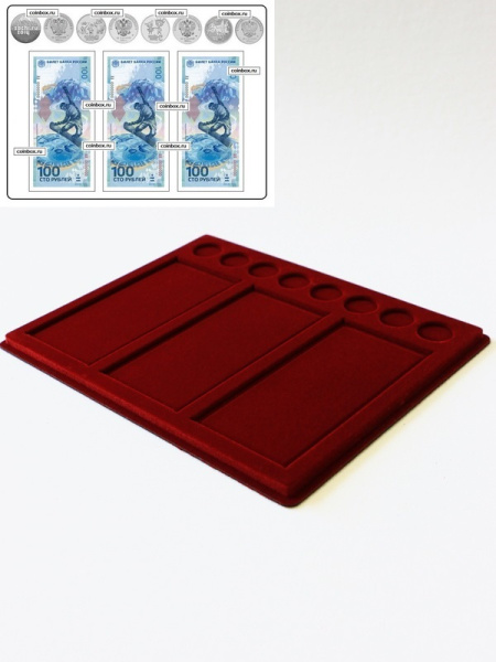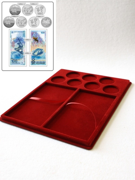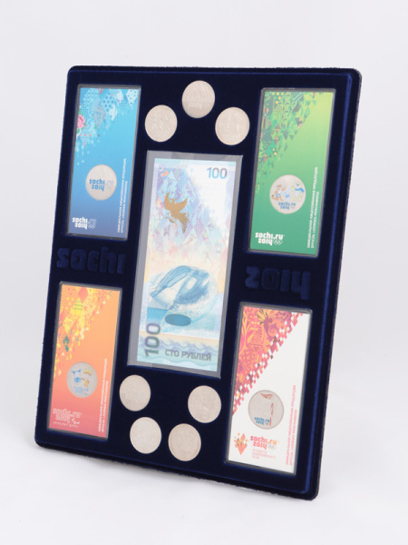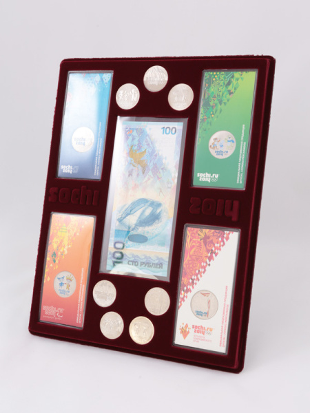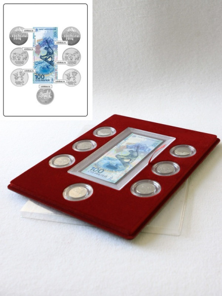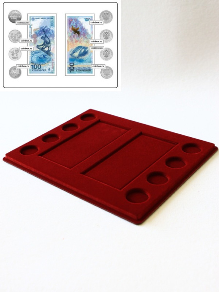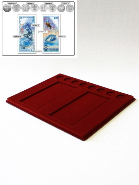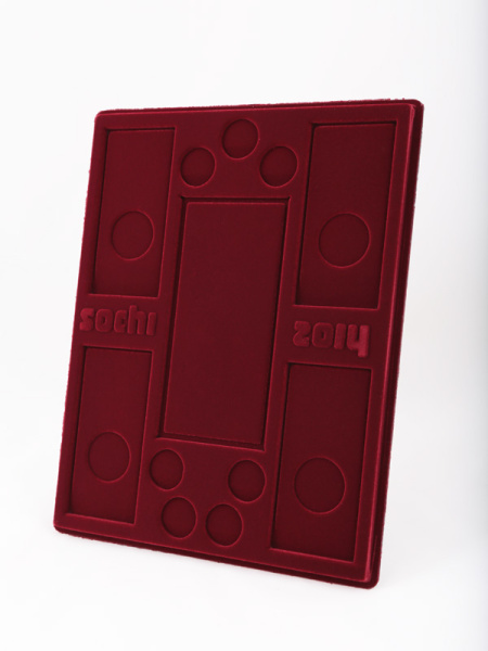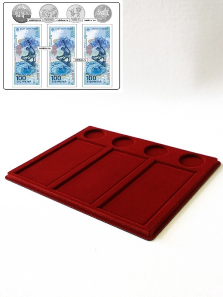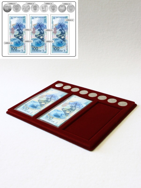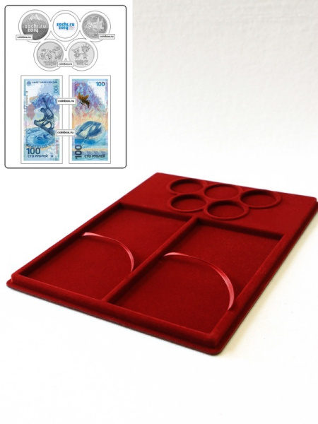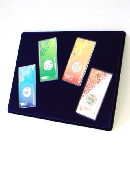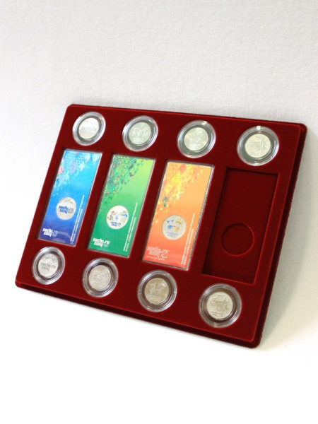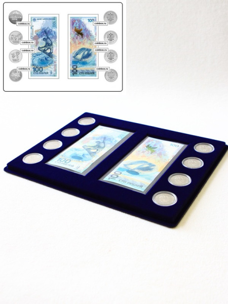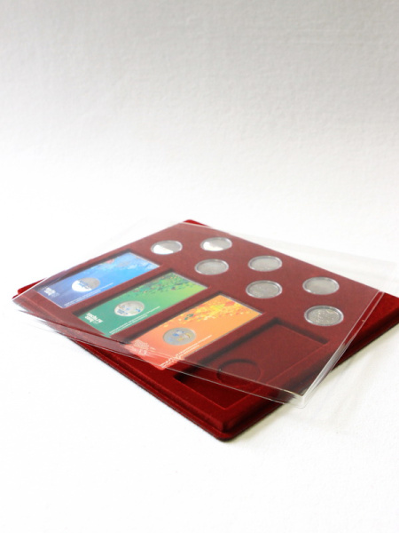 Планшет M (146х236х12 мм) для 4 монет 25 рублей в капсулах Leuchtturm и банкноты «Сочи-2014» в чехле