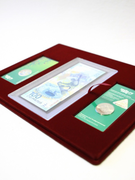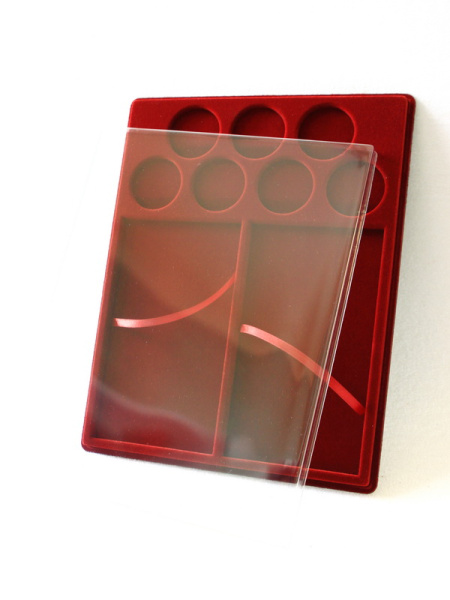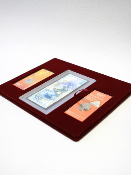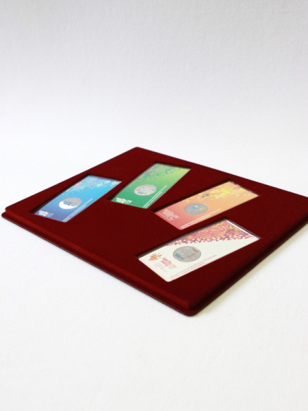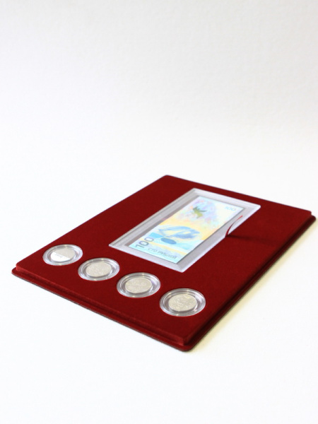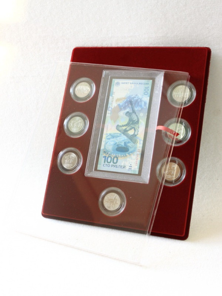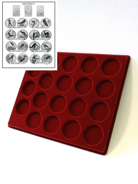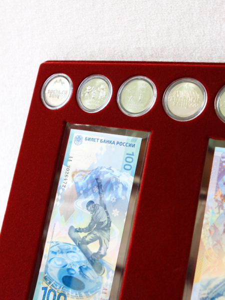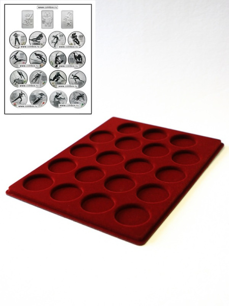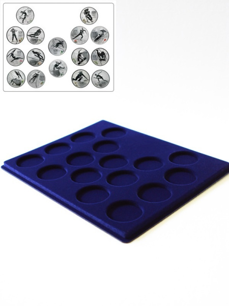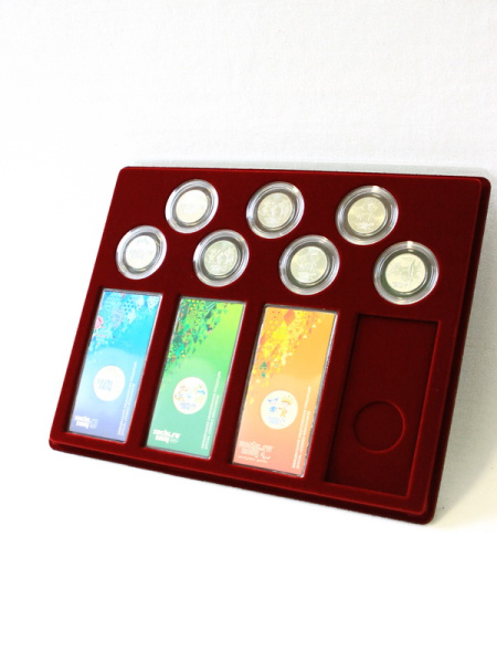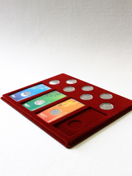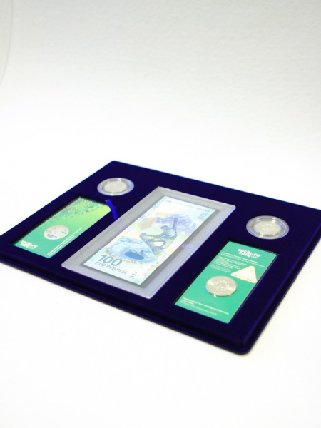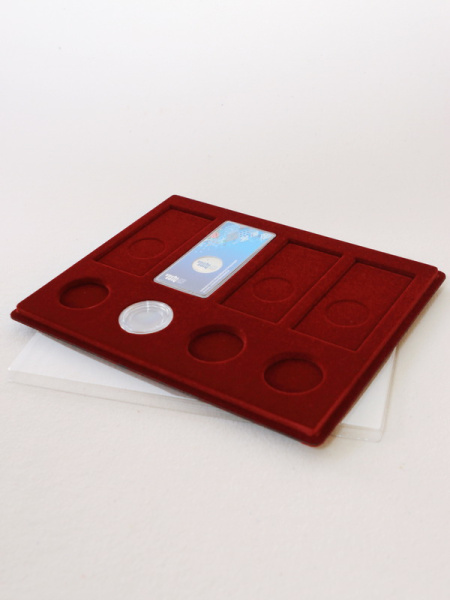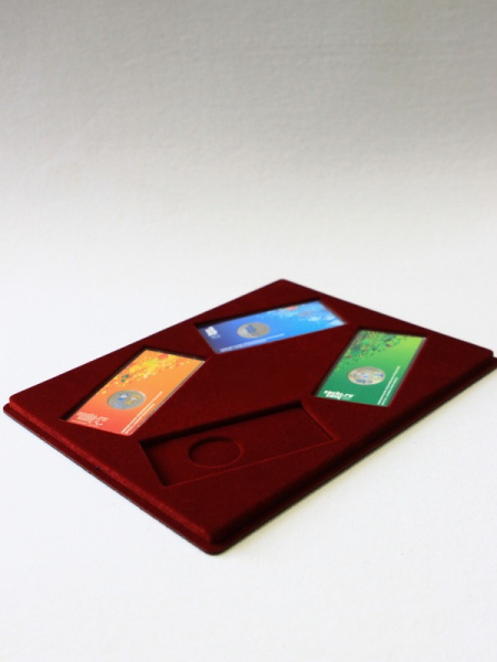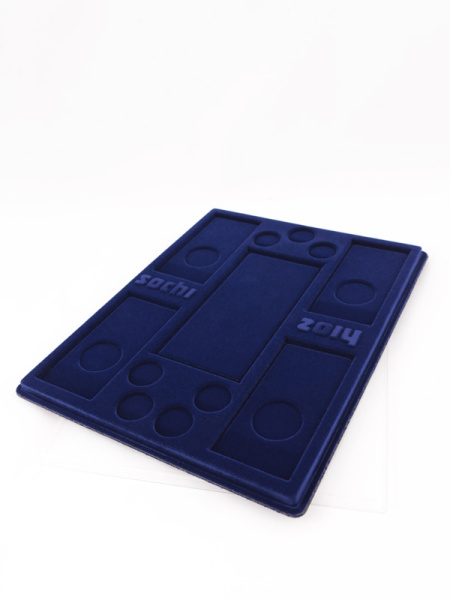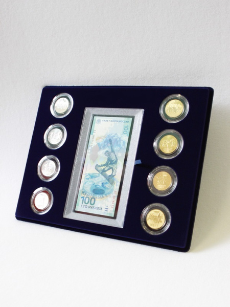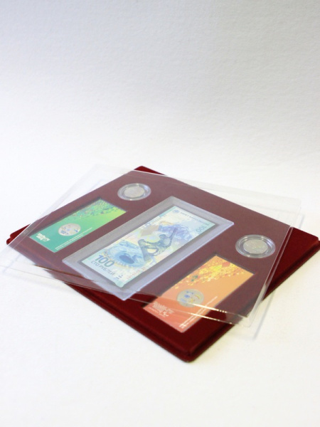 Планшет M (146х236х12 мм) для 4 монет 25 рублей в капсулах Leuchtturm и банкноты «Сочи-2014» в чехле