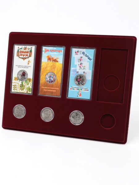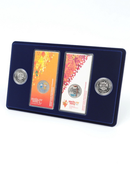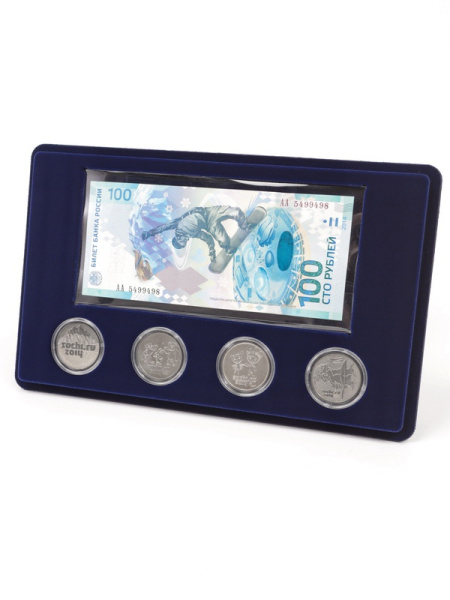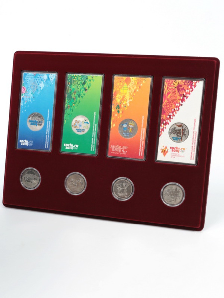 Планшет M (146х236х12 мм) для 4 монет 25 рублей в капсулах Leuchtturm и банкноты «Сочи-2014» в чехле