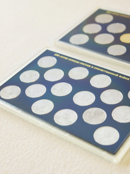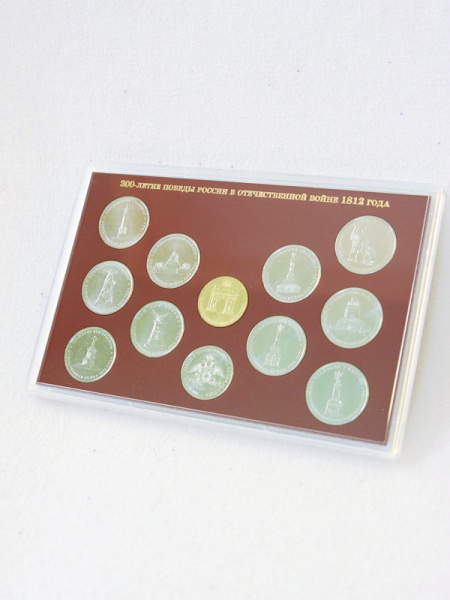Подарочный набор "200-летие победы России в Отечественной Войне 1812 года". В нём содержится набор памятных монет Центрального Банка Российской Федерации "200-летие победы России в Отечественной Войне 1812 года" 2012 года выпуска. Набор состоит из 2 капсул