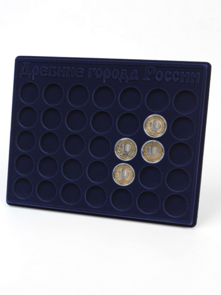Планшет для хранения монет серии "Города". Монеты должны быть уложены в капсулы с внешним диаметром 46 мм.