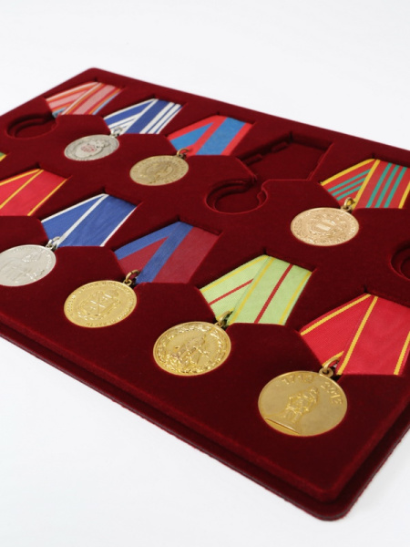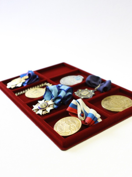Планшет на 8 ячеек подойдет для хранения спортивных медалей и медалей на лентах