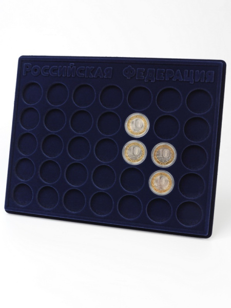Планшет для хранения монет России номиналом 10 рублей, диаметром 22 мм. Монеты должны быть уложены в капсулы Leuchtturm Caps 22.