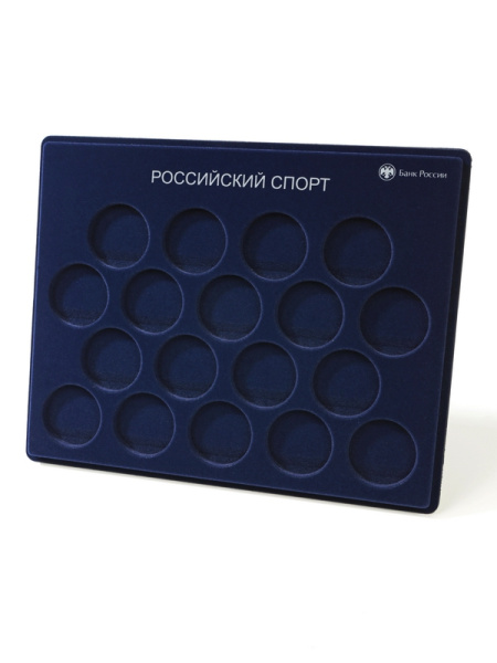 Планшет для хранения монет серии "Российский спорт". Монеты должны быть уложены в капсулы с внешним диаметром 44 мм.