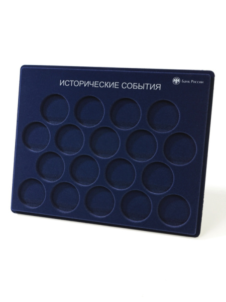 Планшет для хранения монет серии "Исторические события". Монеты должны быть уложены в капсулы с внешним диаметром 46 мм.