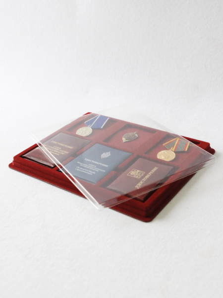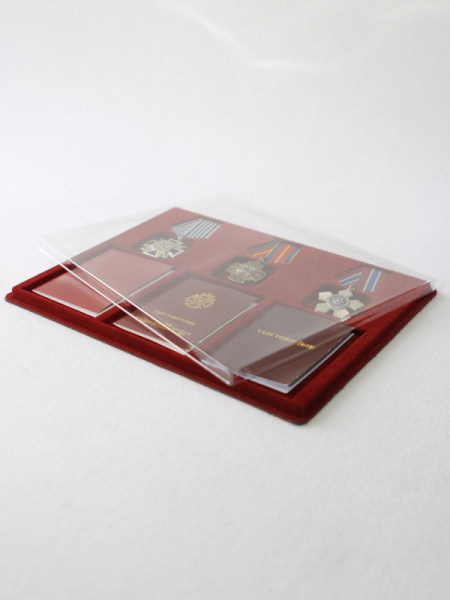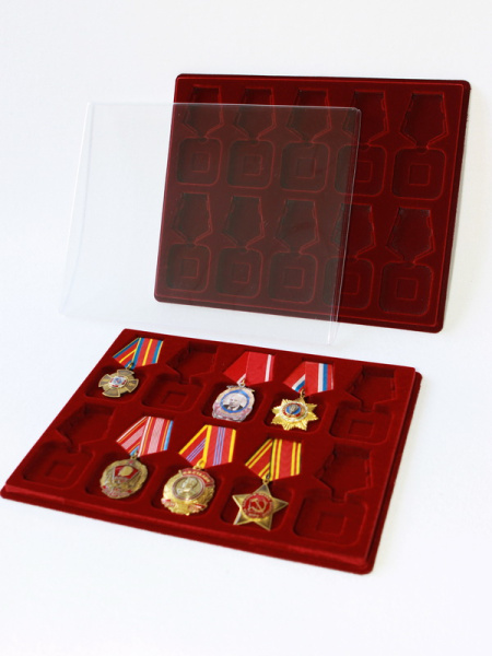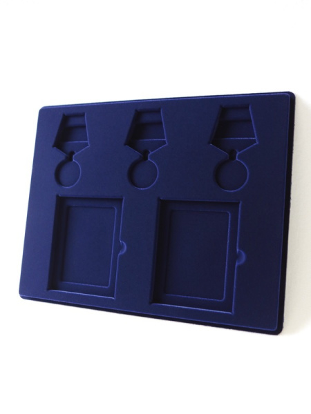 Планшет на 2 ячейки с поролоновыми вставками, к которым можно легко приколоть ордена и знаки на винтах или булавках