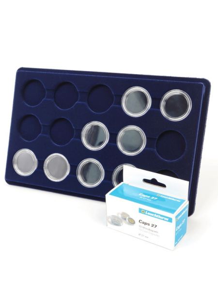 Планшет для хранения 15 капсул Leuchtturm (CAPS 26,5 и 27). Также может подойти для монет в других капсулах. Внешний диаметр капсулы должен быть не более 33 мм.