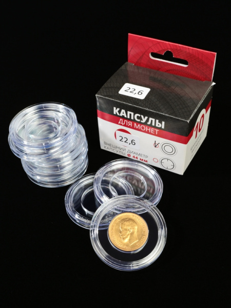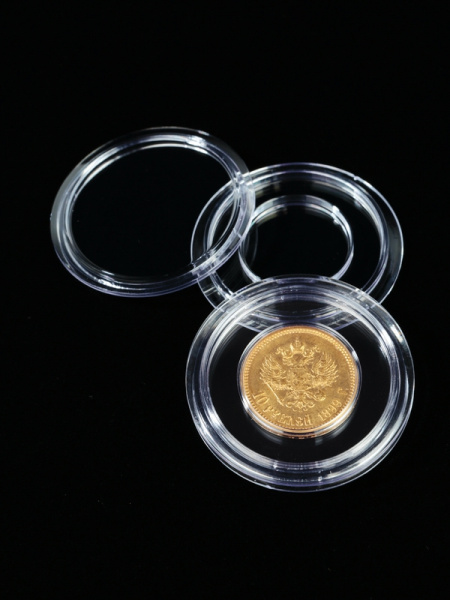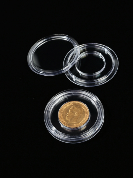 - С учетом размера внутреннего диаметра — данный показатель у монеты и капсулы полностью совпадает. К достоинству таких капсул стоит отнести минимальные размеры, что позволить сэкономить место при хранении большой коллекции. К недостаткам можно отнести сложности в подборе системы хранения, так как капсулы будут иметь разные внешние размеры;