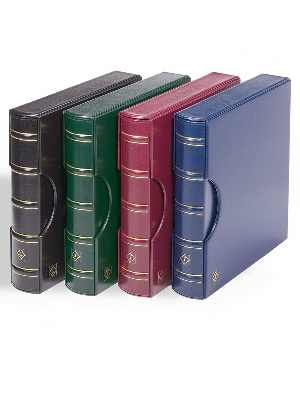 Папка-переплёт для хранения марочных листов, конвертов первого дня, буклетов, листов из буклетов, блоков, сцепок, кварт-блоков, тематических марок большого формата, писем и прочих предметов.