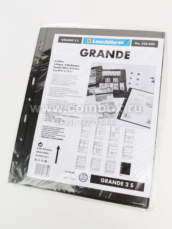 Для листов-обложек GRANDE подойдут папки-переплёты (альбомы) компании Leuchtturm с 4-х кольцевым механизмом: