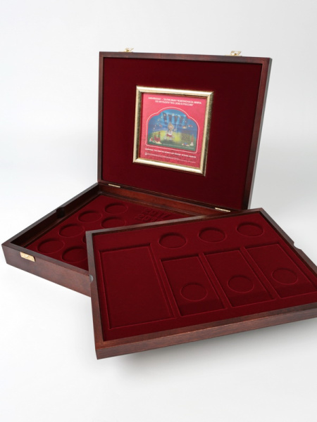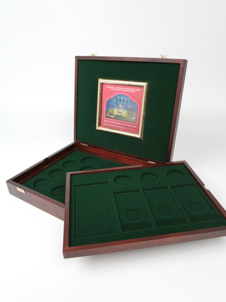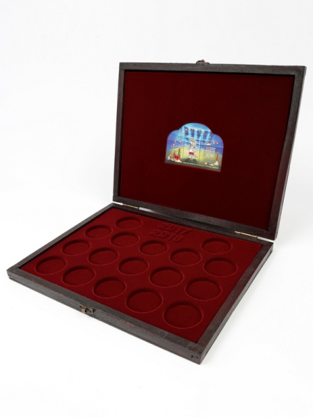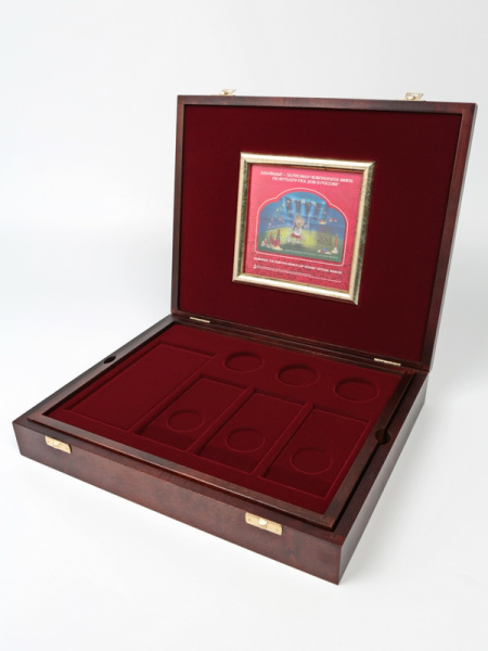 Футляр кожзам Izumrud S (298х237х33 мм) для 3 золотых и 14 серебряных монет «Футбол 2018» в капсулах
