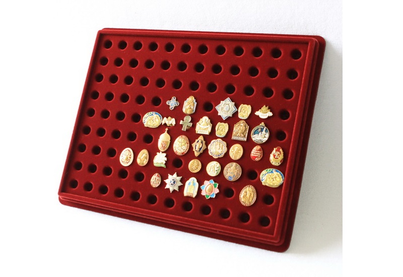 Это доступный по стоимости вариант, который представлен в продаже во всевозможных цветах и дизайнах – классическая бархатная основа, снизу планшет закрыт прочным пластиком черного цвета. Конструкция оснащена прозрачной пластиковой крышкой, которая не скрывает значки, при этом защищает их от пыли, влаги. Планшет универсален и подходит для изделий всевозможных форм, с различными видами креплений. В продаже представлены как универсальные модели, так и тематические решения для хранения спортивных значков, экземпляров с гербами городов и пр. Также доступны планшеты, созданные специально для изделий с цанговым креплением.