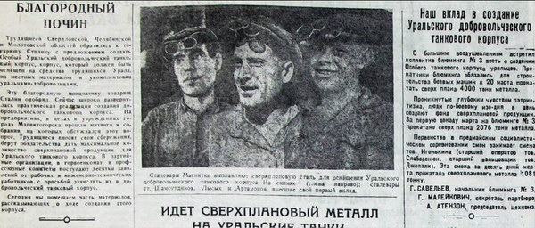 В разгар Сталинградской битвы заводы «опорного края державы» работали для фронта на пределе возможностей. Но уральцы решили сделать дополнительный вклад в победу. 16 января 1943 года «Уральский рабочий» опубликовал материал «Танковый корпус – сверх плана». Танкостроители Урала обязались изготовить в первом квартале сверх заданий столько танков и самоходных орудий, сколько требуется на танковый корпус. Патриотический почин свердловчан подхватили Челябинская и Молотовская области.