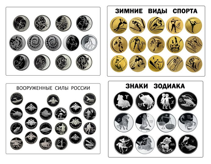 - "Знаки Зодиака" (подходят для монет Центрального Банка РФ, монет Республики Беларусь и монет Республики Армения),