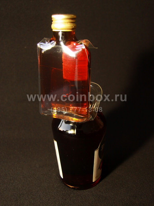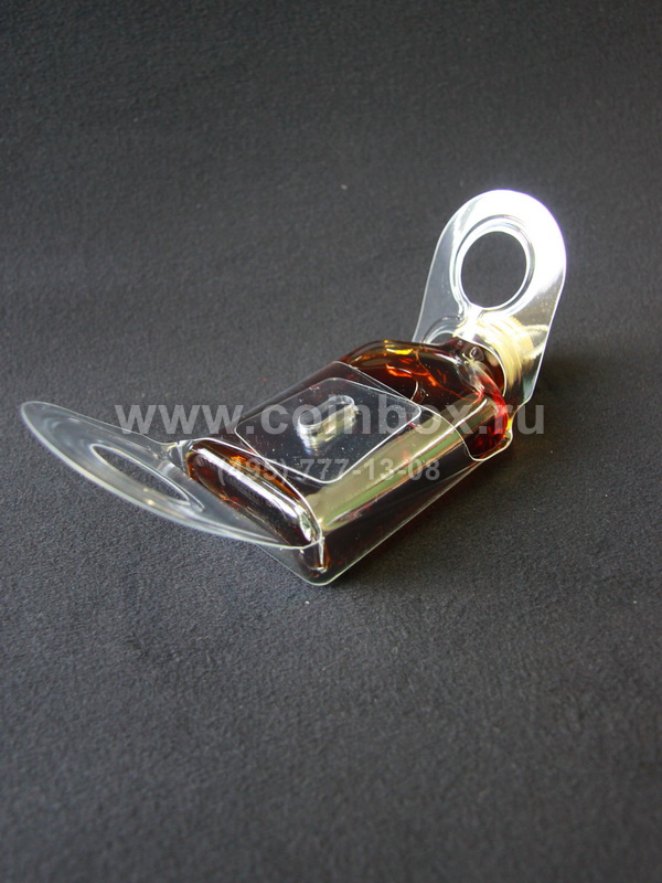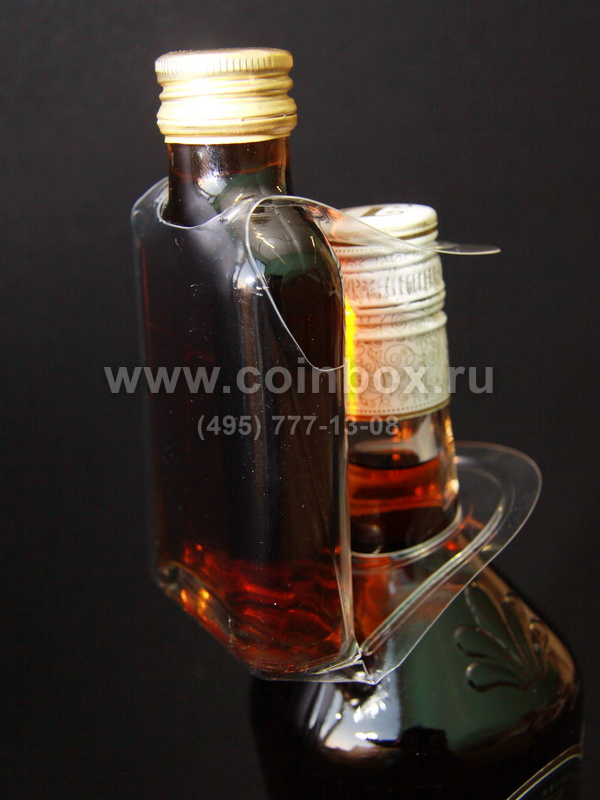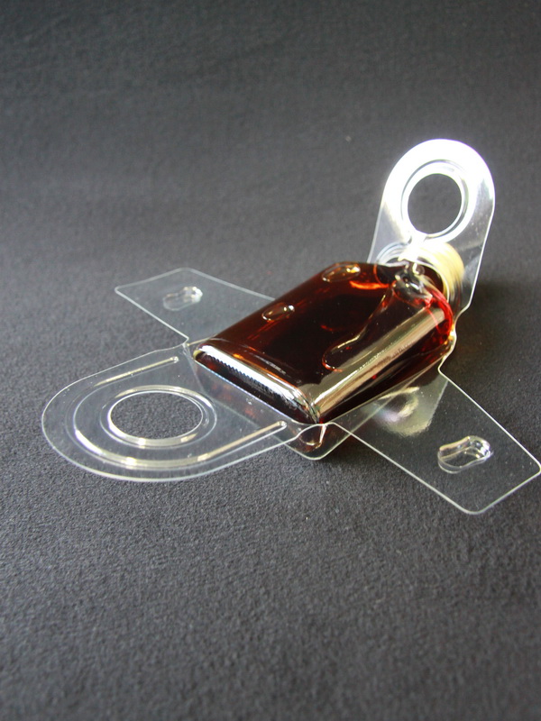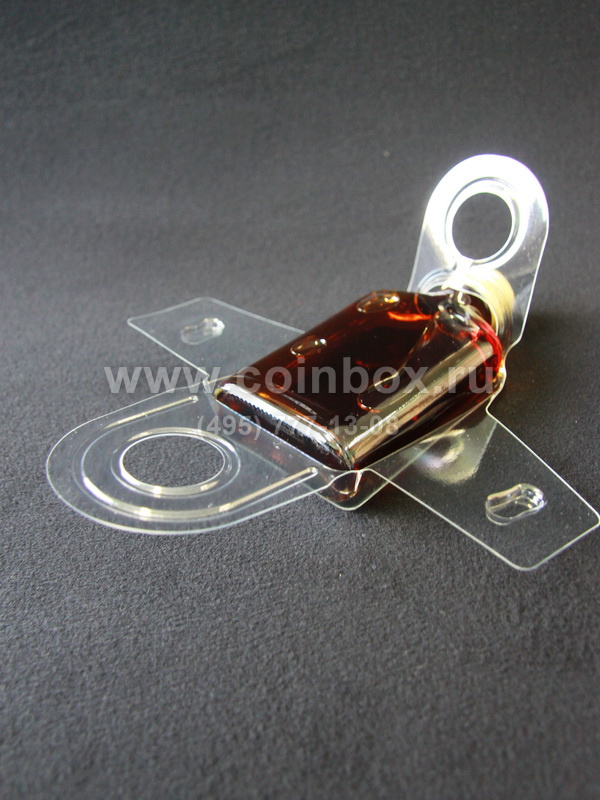 В блистер вставляется маленькая бутылка и одевается на большую.