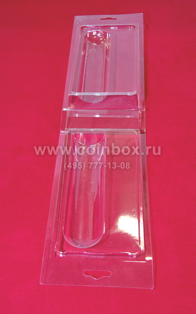 Данная упаковка имеет форму складного двухстороннего блистера. На изделии предусмотрены замки, которые расположены по контуру блистера. Внутрь блистерной упаковки вкладывается изделие и картонка с информацией о продукте.