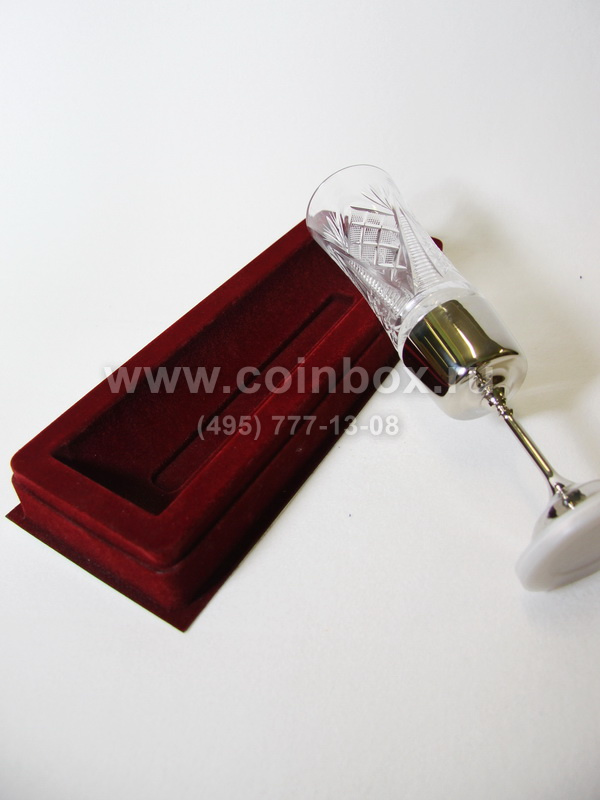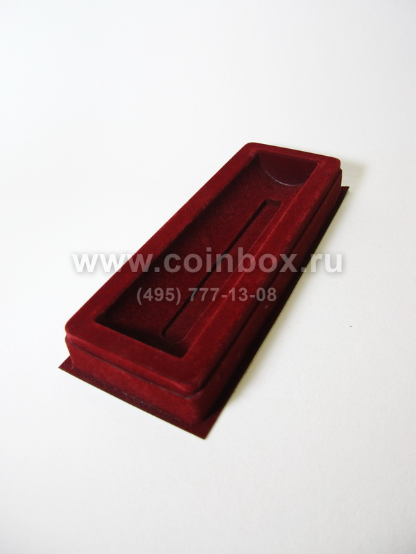 Углубление в упаковке сделано по форме изделия заказчика. Верхняя часть упаковки выполнена из флокированного пластика, снизу к упаковке приклеен белый глянцевый картон. Готовый футляр сверху накрывается прозрачной пластиковой крышкой.