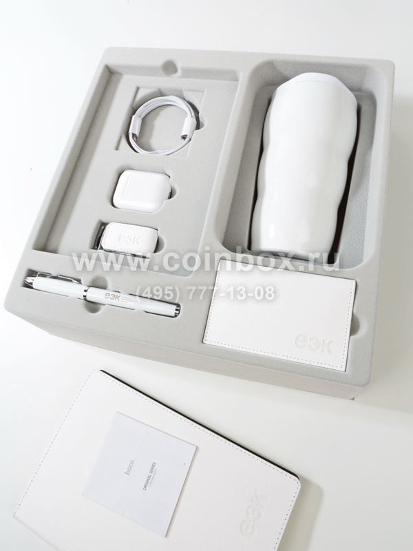 Флокированный ложемент под корпоративный набор. Флокированный ложемент под набор предметов: ежедневник, ручка, наушники, флешка, провода, термокружка, кардхолдер. Ложемент изготовлен из флока светло-серого цвета.