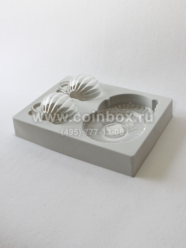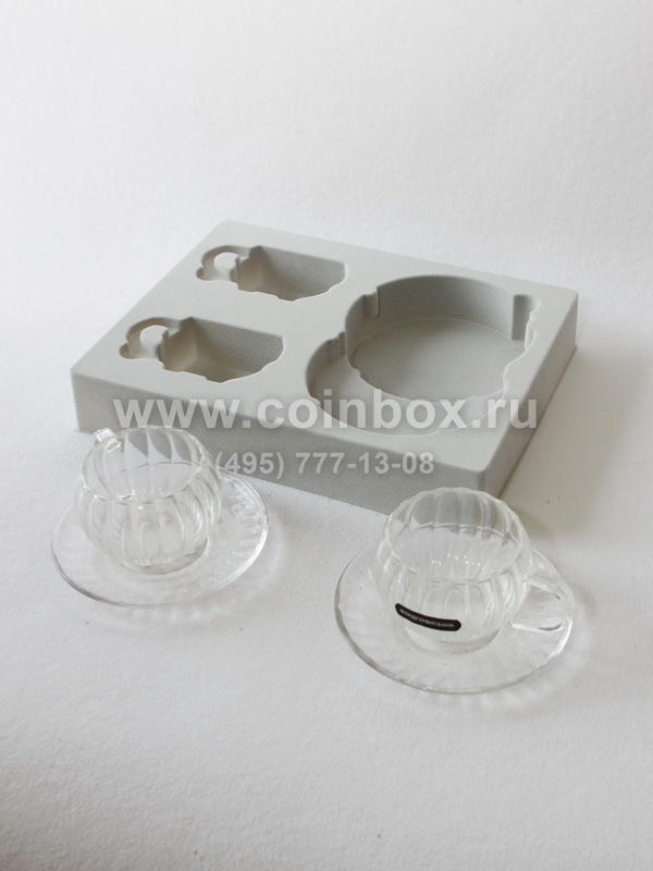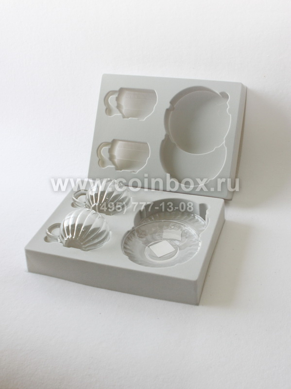 В ложементе сделаны углубления под 2 чайные пары. Ложемент вставляется в картонную коробку.