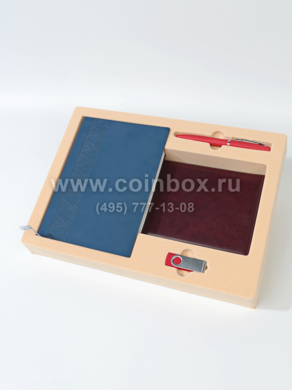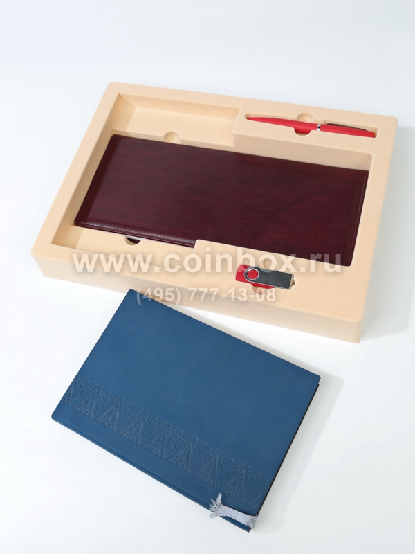 В ложементе сделаны углубления под: ежедневник, планинг, ручку и флешку.