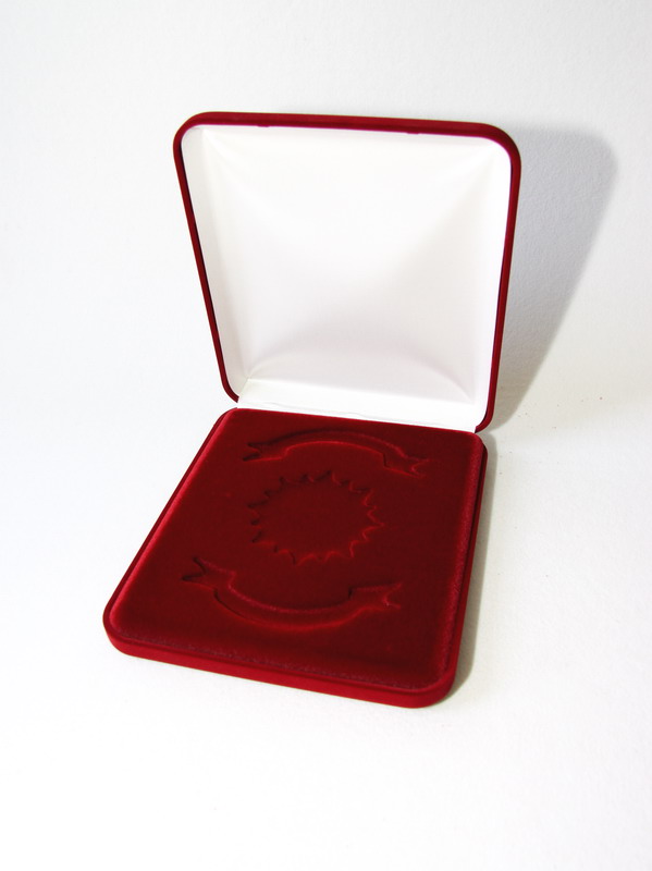 Флокированный футляр с индивидуальным ложементом под орден и 2 шильда.