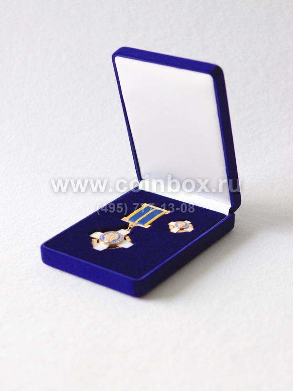 Футляр с индивидуальным флокированным ложементом под медаль и фрачник. Все углубления сделаны по форме изделий.