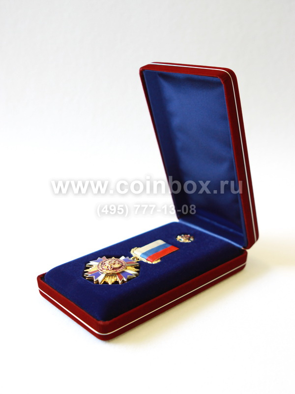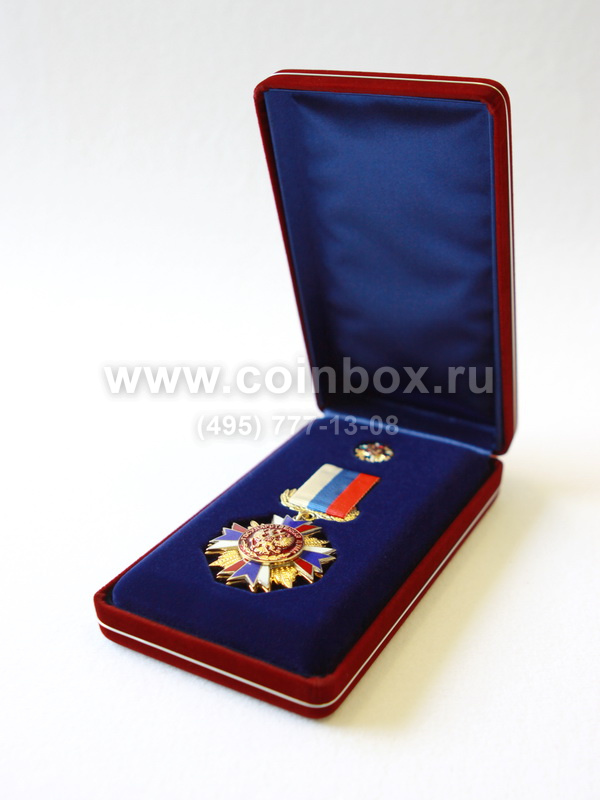 В футляр изготовлен флокированный ложемент с углублением под орден и фрачник.