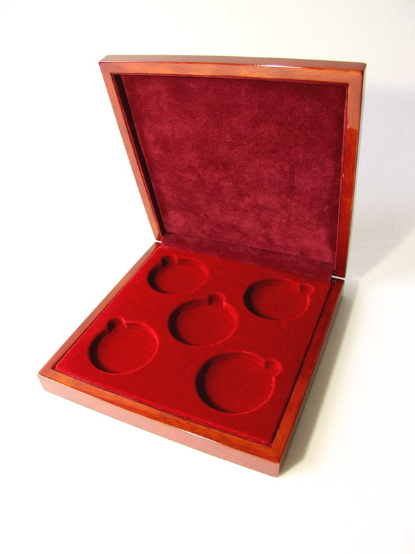 Футляр с индивидуальным исполнением для хранения 5 монет в капсулах. Внешний диаметр капсулы 58 мм.