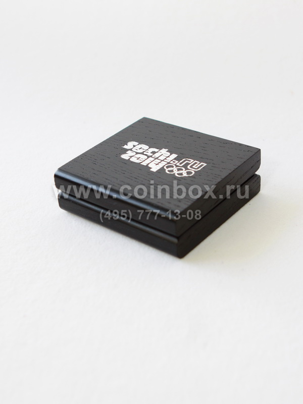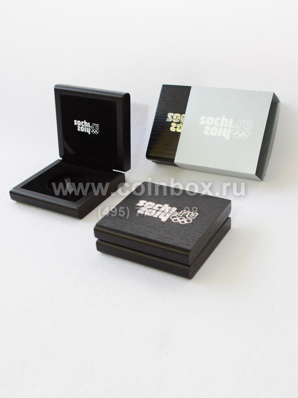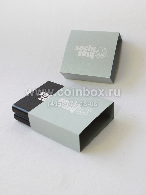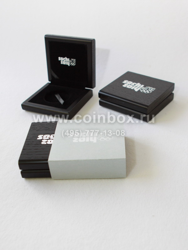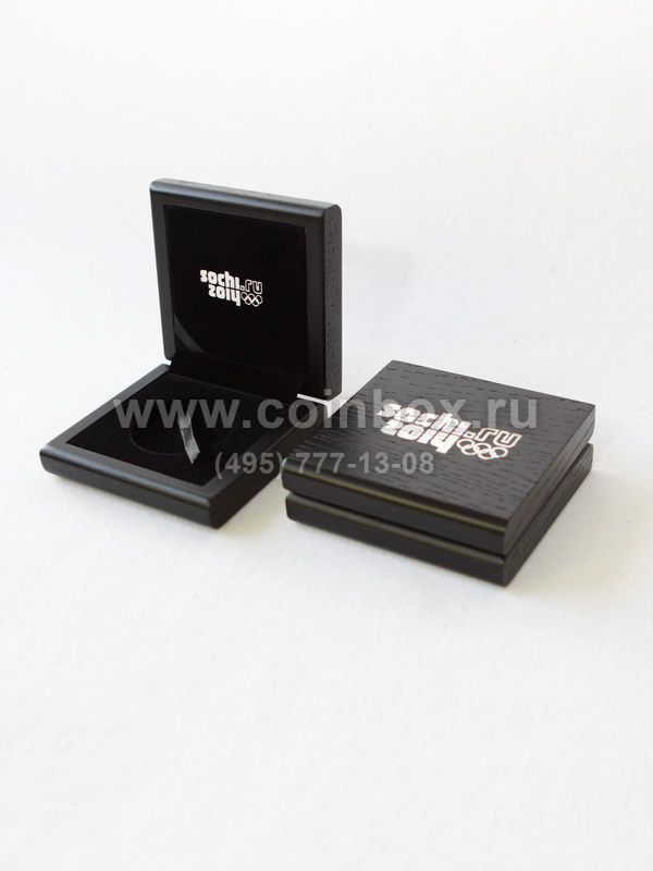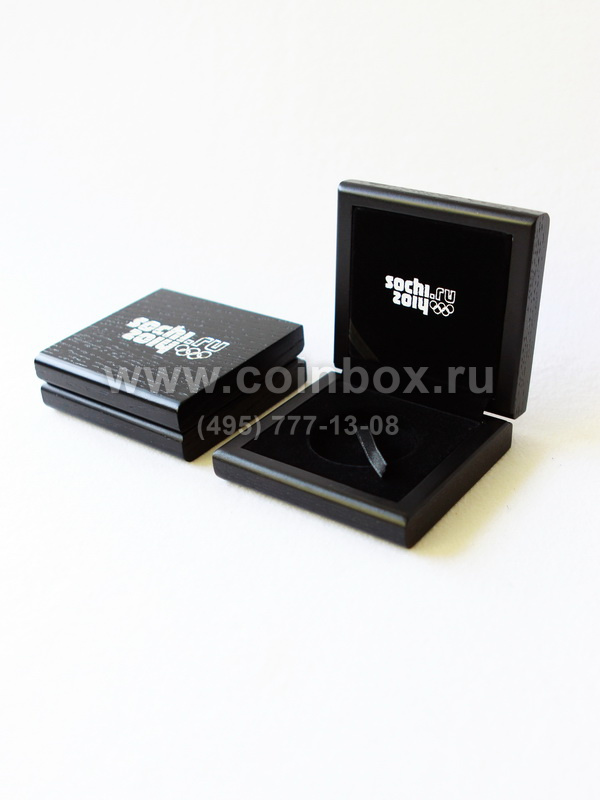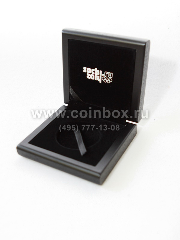 Футляр изготовлен по специальному заказу. Внутрь футляра вставлен флокированный ложемент с лентой под монету в капсуле (внешний диаметр капсулы 46 мм).