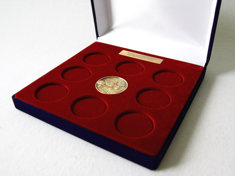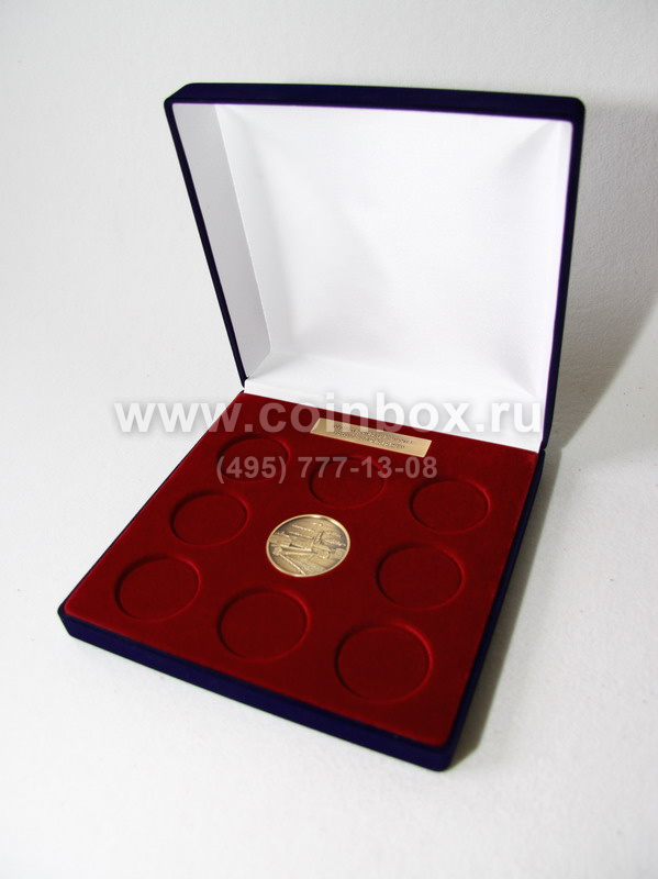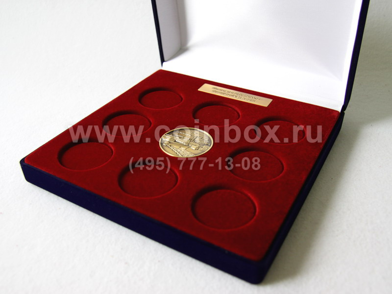 Флокированный футляр с индивидуальным ложементом для 9 медалей и надписи (шильда).