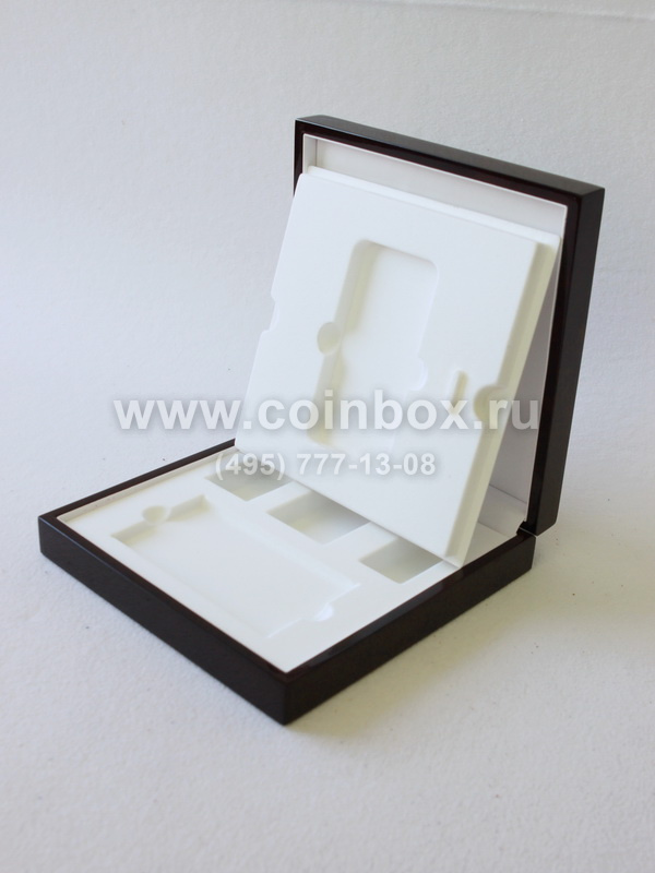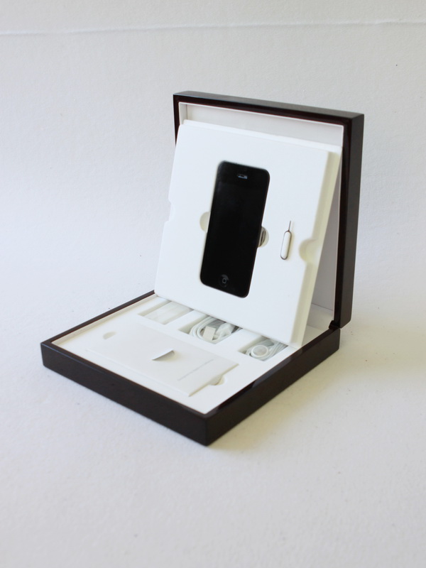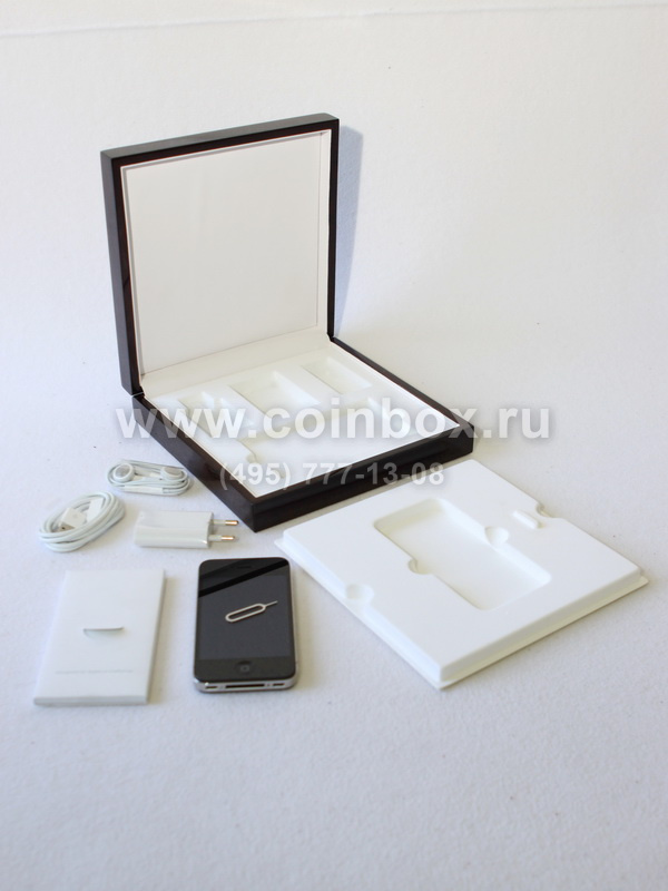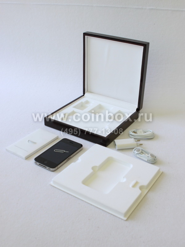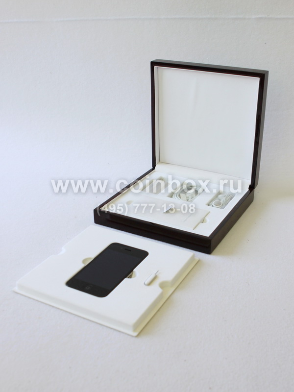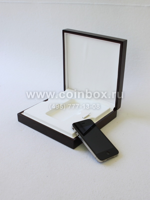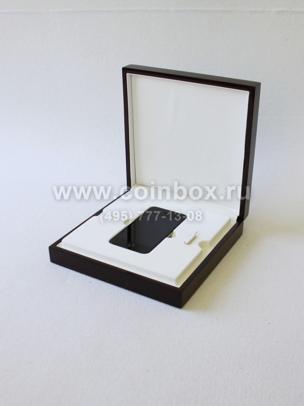 Деревянный футляр тёмно-коричневого цвета с ложементом для серии эксклюзивных мобильных телефонов марки Apple.