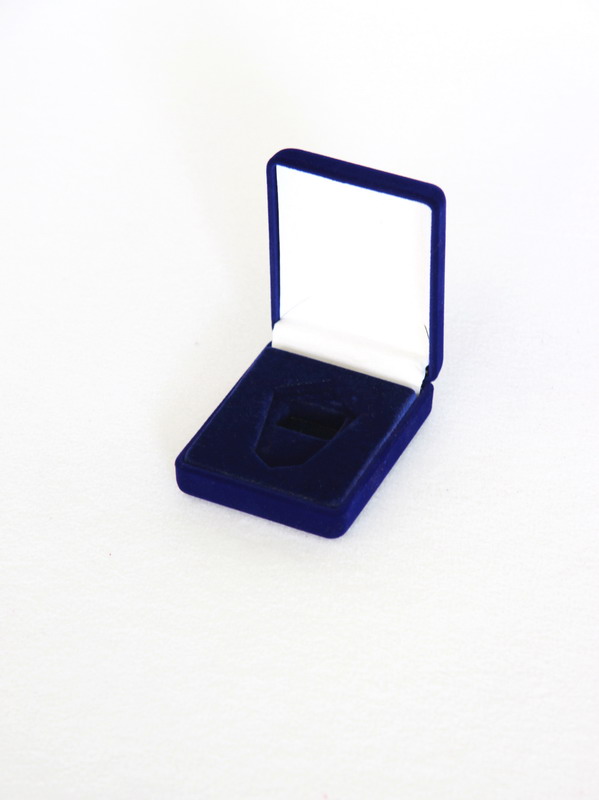 В футляр изготовлен флокированный ложемент с углублением под значок.